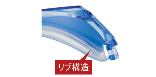 フェイスパッドに段を持たせる「リブ構造」がストラップの引っ張りによるフレームの型くずれを防止。目への圧迫感を軽減し、長時間装着しても快適さを保ちます。
