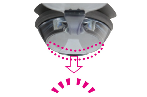 地面におとしても、レンズのふちにある突起によってレンズ面が地面に当たらず、傷つきを防止します。