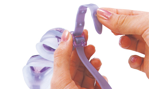 長さの調節は、ストラップの穴を突起部にかけるだけのワンタッチ。爪を伸ばしている方でも楽に調節できます。