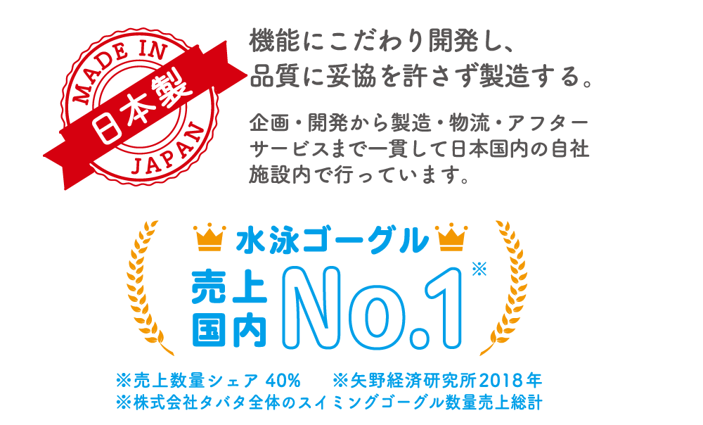 トップ選手が使うレーシング用から、子ども用まで、すべてのゴーグルを作っているスイミング用品専門ブランドです。