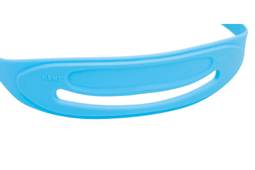 紛失や取り違えを防ぐ名前欄は、ゴーグルのデザインを損なわないようにストラップ後頭部に配置。