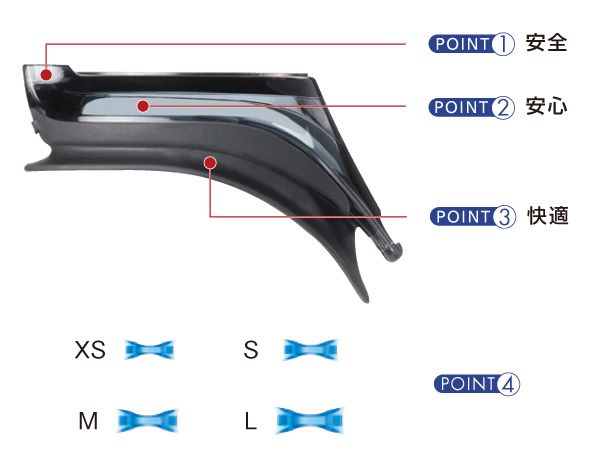 長さの異なる4サイズの鼻ベルトで6~1 2 歳まで幅広く対応。