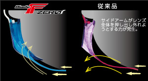 ストロークやターン時に不意に腕がサイドアームやキャップに強く接触すると、レンズへ力が加わります。BladeF ZEROはその力を逃すことができます。